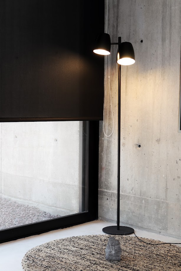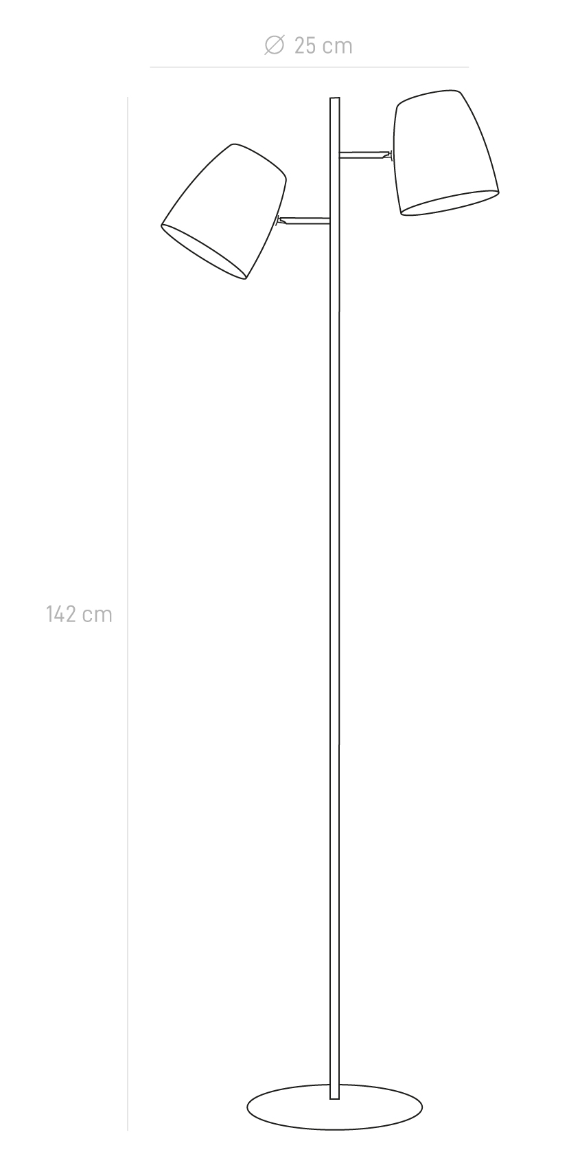 Lámpara de pie con dos cabezales direccionales