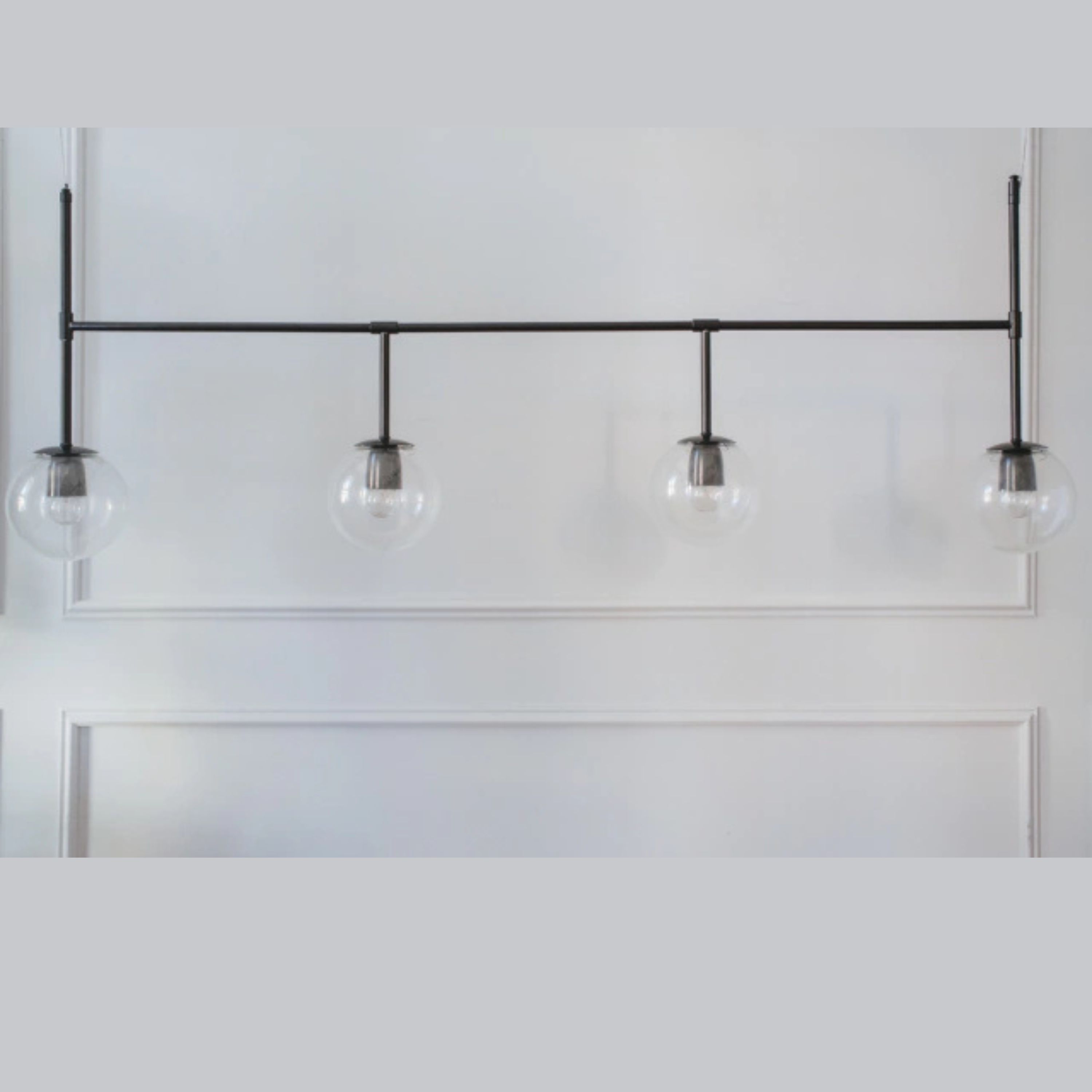 Lámpara colgante de estructura metálica y globos de vidrio (4 unidades). Incluye soportes para el techo y florón. Portalámparas E27. No incluye foco de luz.