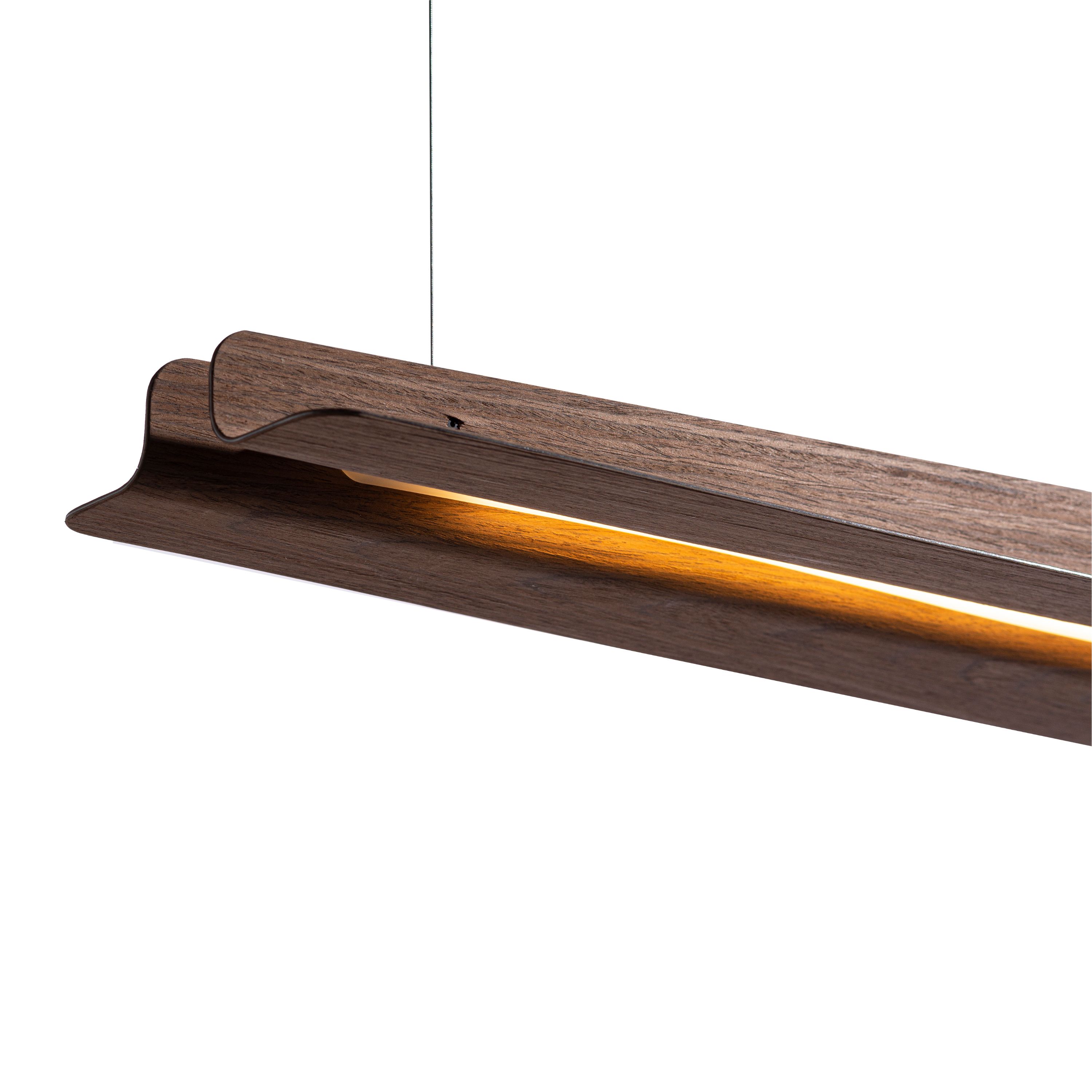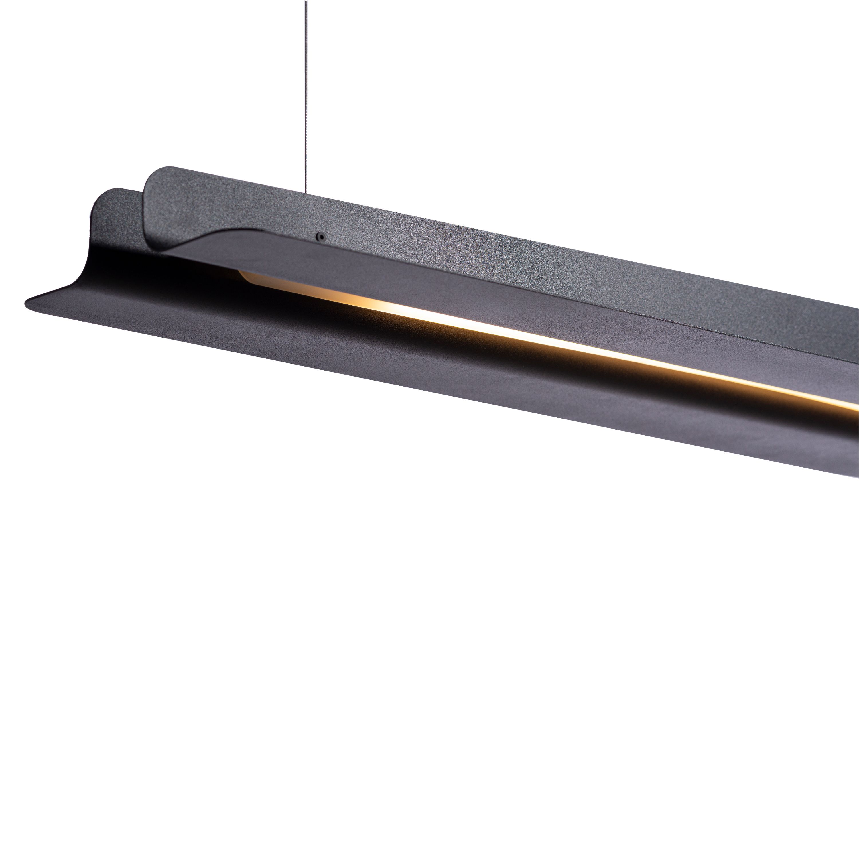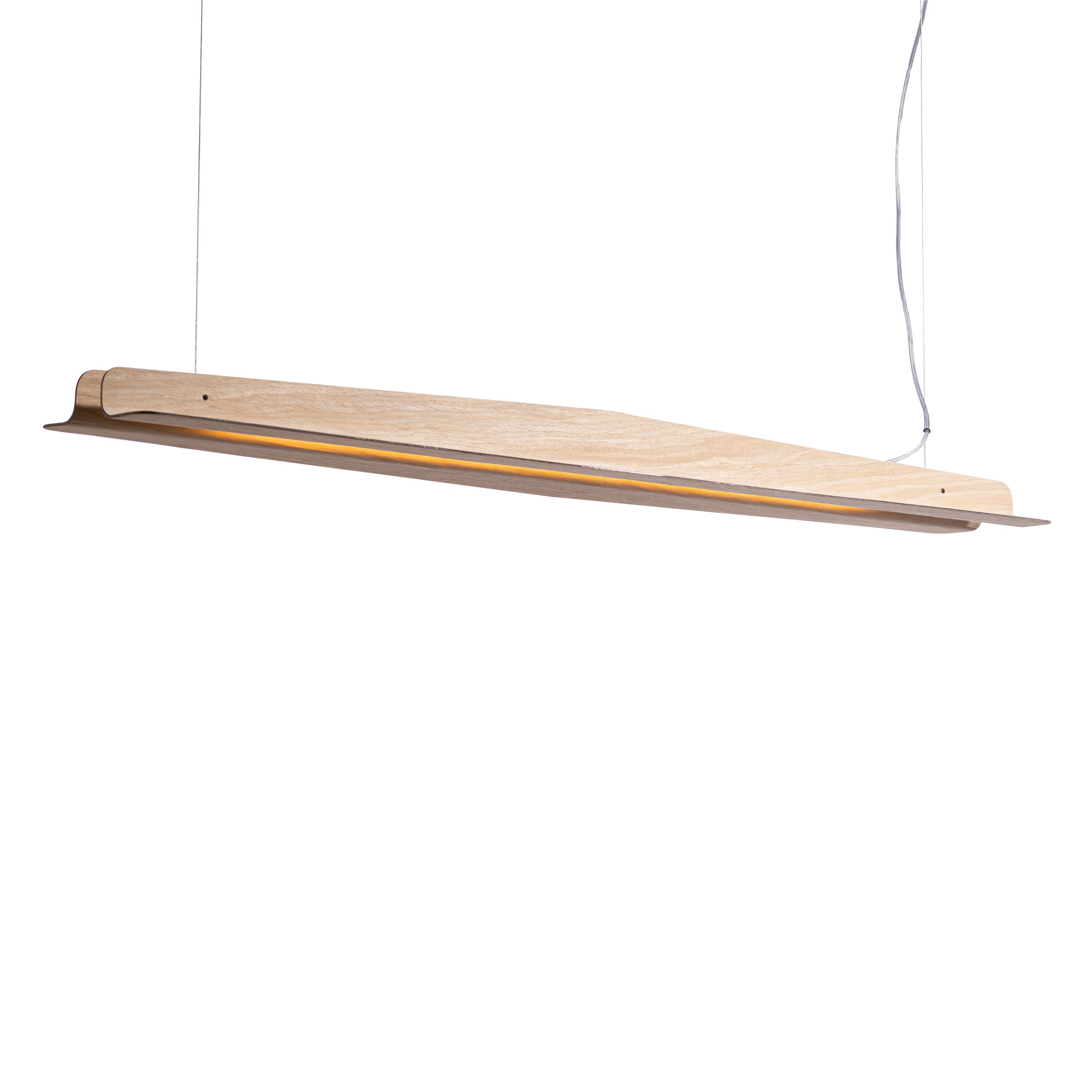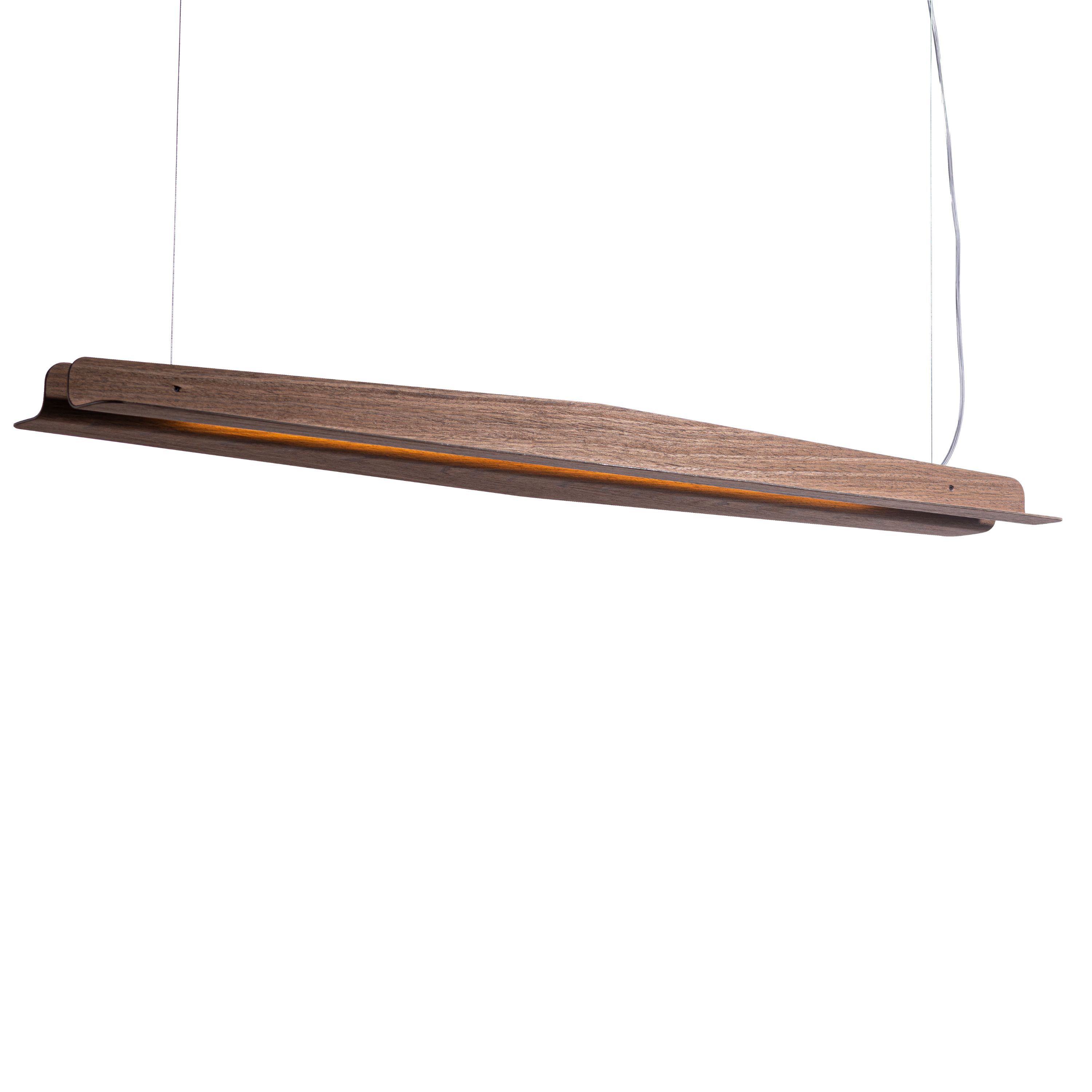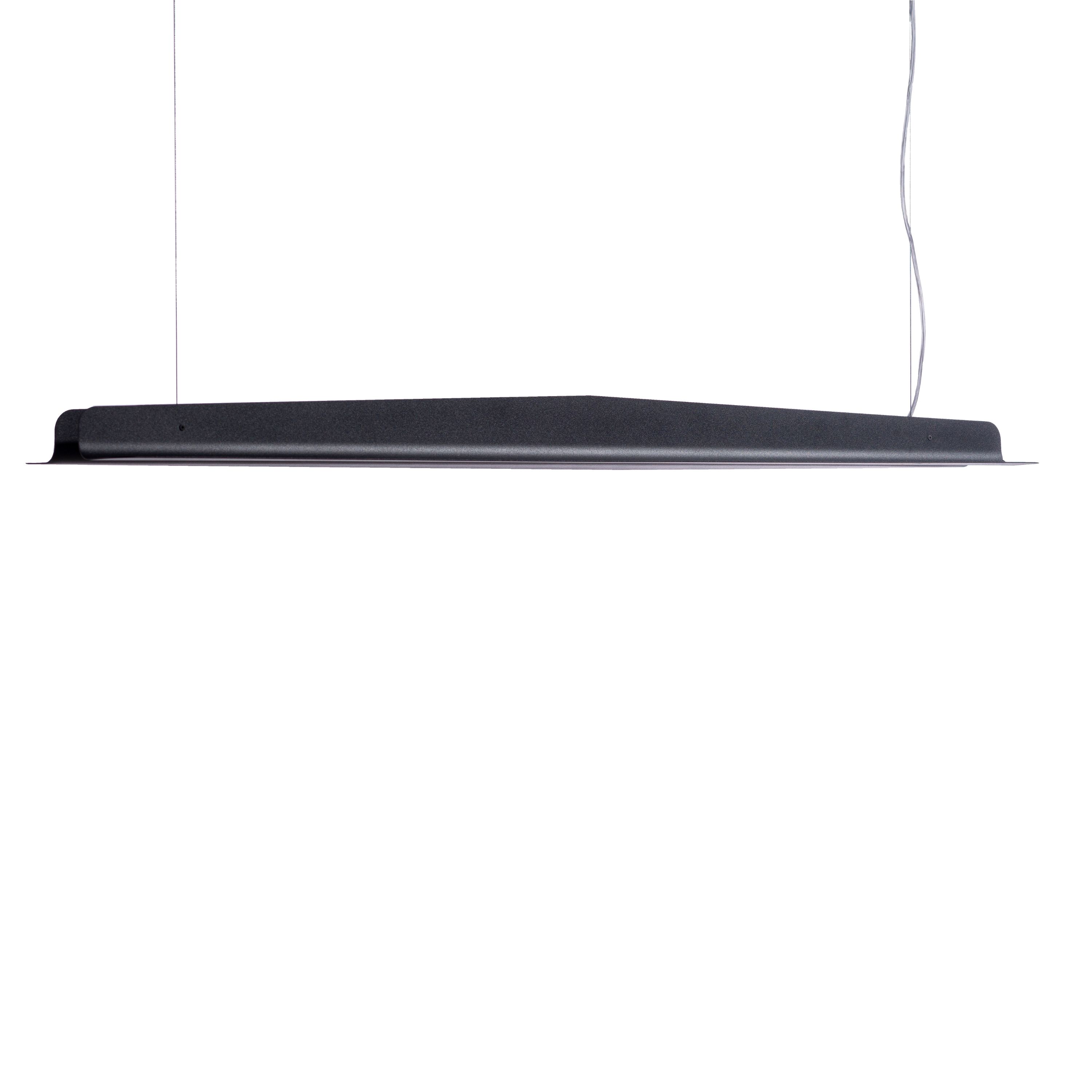 Lámpara de suspensión de luz directa. Aletas de acero. Tensores de suspensión de acero galvanizado. Difusor de metacrilato esmerilado. Cable eléctrico transparente.